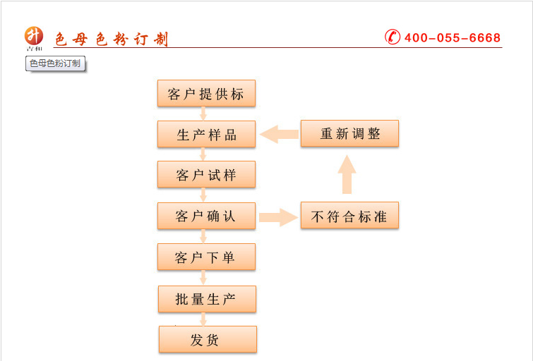 北京吉和色母料有限公司經過十幾年的摸索發展,已經建立起一整套的彩色母粒系統,目前成型的各色母料一千多種,同時為滿足不同客戶的特殊需求,公司還開展了色粉和彩色母料定制業務,可以根據客戶需求定制特殊色母。