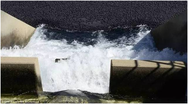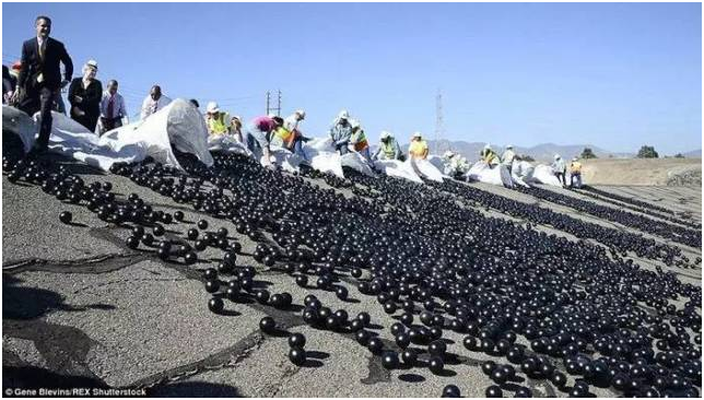 這個方法比水電局原先考慮的另一個省水方法節省了2 5000 萬美元。這些黑色遮陽球直徑約 10 公分,覆蓋了水庫 71 公頃的水面,可以將水與塵埃、雨水、鳥類、野生動物隔絕,也可以減少阻止藻類的光合作用,減少致癌物質的產生,提高飲水品質,每年還可以減少 3 億加侖(約113500萬公升)的水蒸發掉。這相當于454個奧林匹克游泳池的水量,足夠供應 8100 人一年的飲水