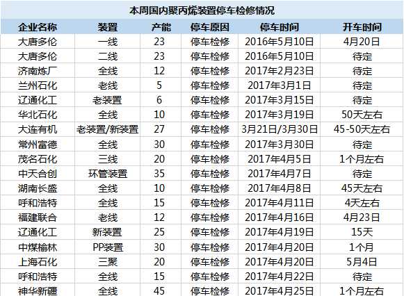 5.1、PP裝置檢修動態(tài)