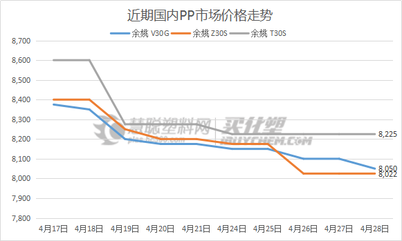 本周聚丙烯市場跌勢減緩,臨近周末粉料有小幅度上漲,上游廠家價格逐漸穩(wěn)定,貨源成本得到支撐,目前社會庫存仍處于高位,市場供需矛盾較為激烈,后市需求難以得到有效提振,五一假期將至,終端企業(yè)放假期間庫存仍會有一定積累。