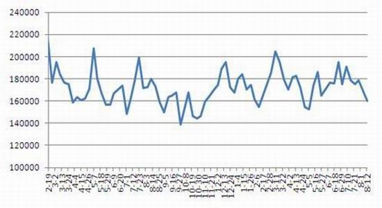 PP期價價差走勢與塑料走勢類同,都是處于期價貼水格局。縱觀8月份的塑料和PP反彈走勢,可見本輪反彈主要是因為PP期貨市場軟逼倉行情引起。當(dāng)然同時,現(xiàn)貨市場配合提價共振,才引起弱勢情形下的快速反彈。不過因為原油下跌引起成本塌陷,8月中旬開始期貨市場在恐慌中率先下跌。8月24號華東現(xiàn)貨報價8050,是否跟隨期價下跌,成為PP期貨短期操作的標(biāo)桿。在市場空頭趨勢良好的情況下,現(xiàn)貨下行的概率逐漸增加,因此逢大幅反彈即可以空頭思維參與,且風(fēng)險較小。后期應(yīng)該關(guān)注現(xiàn)貨市場是否緊跟期貨市場快速下跌,以及期現(xiàn)價差超過5%的理論套利區(qū)域(一般當(dāng)期現(xiàn)價差超過5%,會有大量資金進(jìn)行套利操作)。